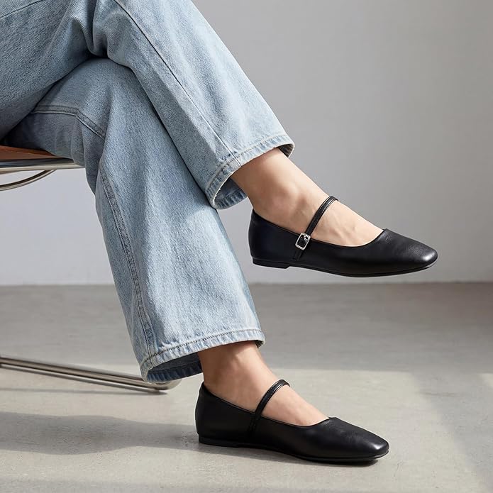 Chic & Modern Design: Sleek Mary Jane flats that instantly elevate both casual outfits and formal wear.