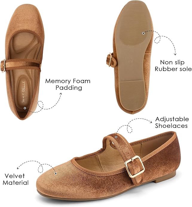 PREMIUM MATERIALS: These velvet mary janes for women combine high-quality leather and glossy velvet to deliver a luxurious yet understated look perfect for ballet flats shoes for women suited for both daily wear and professional occasions